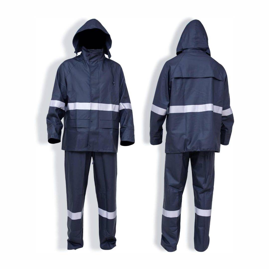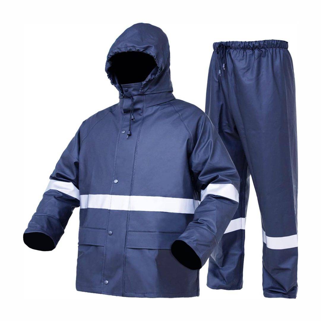 Waterproof Navy Blue Safety Rain Suit with Hoodie and Rain Pants – Complete Rain Protection Set